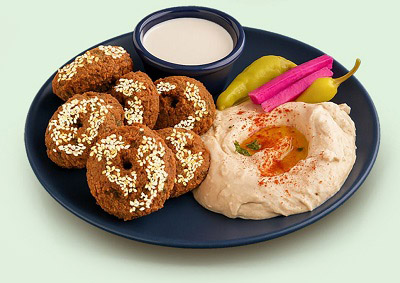 Für Falafel-Fans! Sechs Falafel, Hummus, eingelegtes Gemüse und Tahini-Sauce
