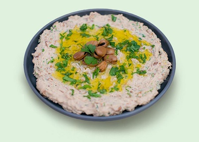 Der Mysteriöse! Passierte Favabohnen/Saubohnen, abgerundet mit Tahini.