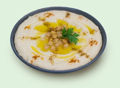 Der Klassiker! Sämig pürierte Kichererbsen, verfeinert mit Tahini.