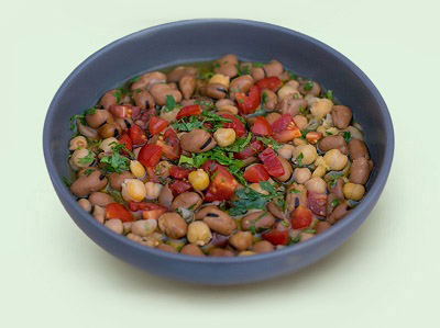 Der Neue mit Sait! Ganze Kichererbsen und Favabohnen in Olivenöl, Zitrone und Knoblauchsauce.