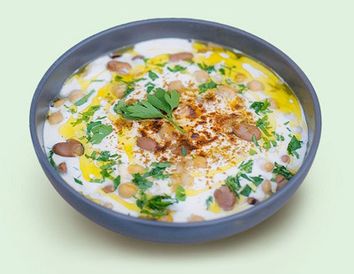 Der Neue mit Tahine! Ganze Kichererbsen und Favabohnen in Tahini, Joghurt-Sauce.