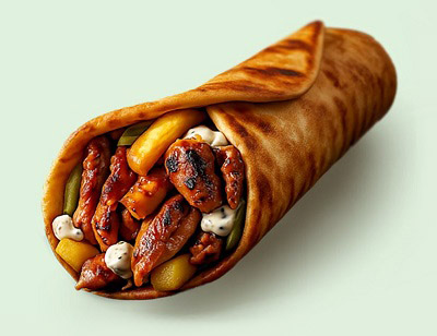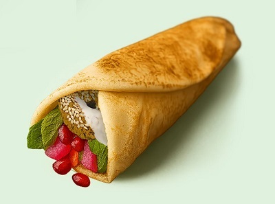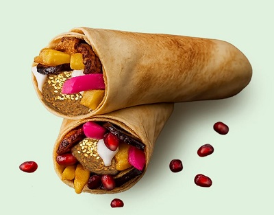 Veggie Power! Falafel Wrap mit frittierten Auberginen und Blumenkohl.
